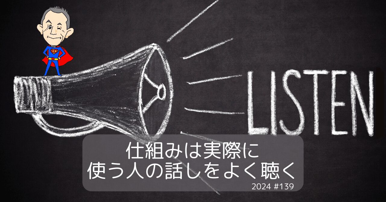 仕組みは実際に使う人の話しをよく聴く ブログ 2024.11.14 この記事は約1分で読めます。 仕組みは実際に使う人の話しをよく聴く|ヒロ⭐自動化ラボ【概要】仕組み作りのミーティングがありました。事前情報からあーでもない、こうでもないと考えていたのですが、本人とビデオミーティングで話しをすると、なるほどと自分の想像の域を超えていました。そんなことをシェアしたいと思います。最後までお読みい...